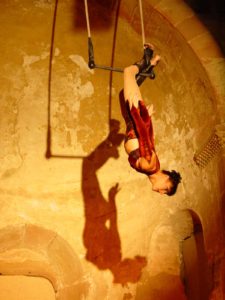 Der ungewöhnlichste Ort, an den die Arbeit im Fresche Keller uns führte, ist die Klosterkirche Konradsdorf, in der wir nicht nur eine Varieté-Show inklusive Trapeznummer auf die eigens errichtete Bühne brachten, sondern auch eine Kabarettreihe unter anderem mit Dieter Hildebrandt.